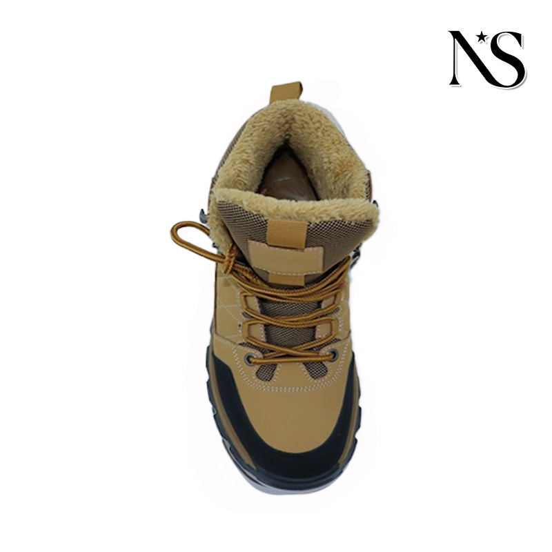 These tan and black winter boots are a fantastic blend of warmth, style, and functionality, perfect for braving cold weather. The upper, in a rich tan hue, combines durable materials with sleek black accents on the toe, heel, and other key areas, creating a visually appealing contrast that adds a touch of rugged elegance. A standout feature is the plush, fuzzy lining inside, which looks incredibly soft and promises to keep your feet toasty even in freezing temperatures. The lace - up design allows for a snug and adjustable fit, ensuring the boots stay firmly on your feet whether you're walking on icy sidewalks or trudging through snow - covered paths. The sturdy sole is another key element; its robust construction and tread pattern are clearly designed to provide excellent traction, reducing the risk of slips and falls on slippery surfaces. Small yet thoughtful details, like the way the materials are stitched together and the overall craftsmanship, suggest these boots are built to…