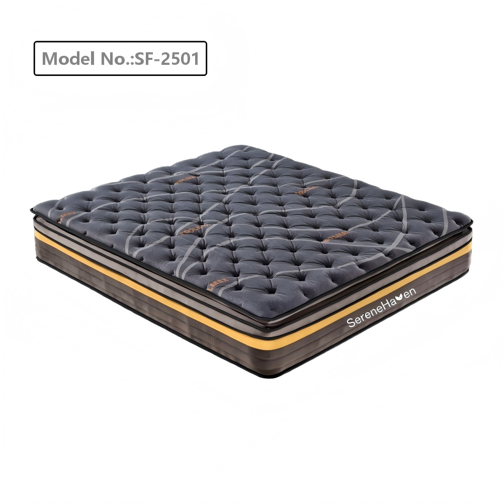 SereneHaven SF-2501 Hybrid Bed Mattress - Medium Firm 34cm Thick with Tiger Edge Design Balanced Support for Home & Commercial Use | motion isolation mattress for family bedrooms & mid-range hotels We tweaked layer densities and edge construction 12 times before getting the SF-2501 right—not just "medium firm," but that sweet spot: soft enough to cradle your hips, firm enough to keep your spine straight. And that tiger-edge design? It stops sagging even if your kids jump on the edge every single day—we’ve tested it, and it works. What Makes SF-2501 Different We skip cheap shortcuts—every layer is built to last, and the little details are what set this mattress apart from the rest. Start with the 34cm 5-layer hybrid build: COOLMAX fabric on top (breathes 2.5x better than regular mattress covers, total game-changer for hot sleepers!) paired with memory foam and dual high-density sponge, plus 22cm pocket springs below. It’s soft like a cloud when you lay down, but bounces bac…